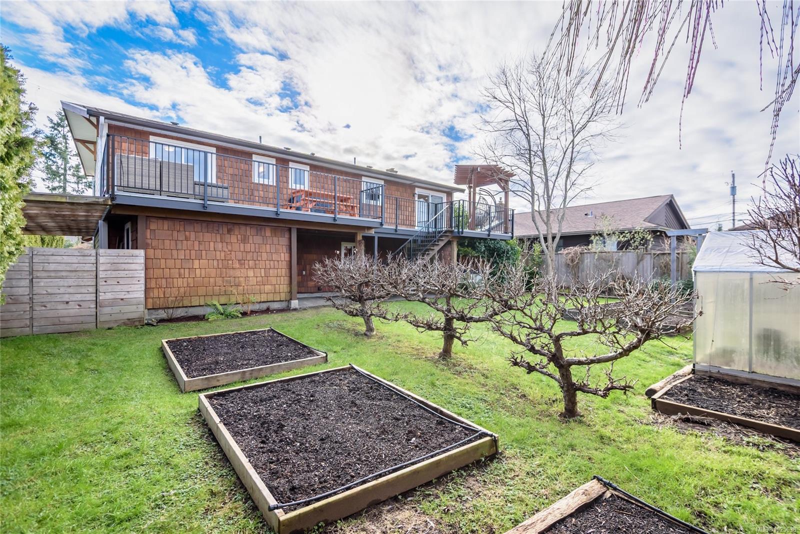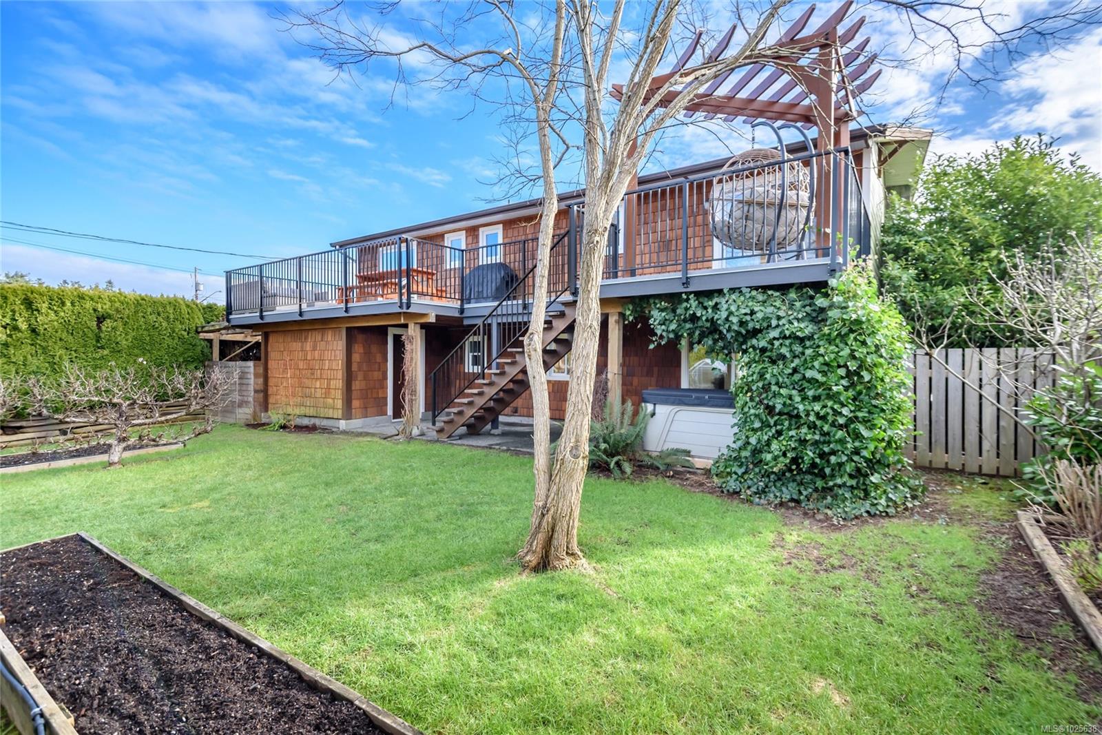 Pride of ownership shines throughout this West Coast–inspired home, showcasing Hardiplank siding, cedar shake accents, and a welcoming covered cedar entry. The lower level offers a spacious family room and/or fourth bedroom, a 3-piece bathroom, and a dedicated laundry area. Sliding doors lead directly to the backyard, creating an ideal setup for guests, extended family, or versatile living options. Upstairs, the bright and inviting living room features an updated brick fireplace, warm bamboo flooring and sliding doors that open to the recently upgraded deck. The main bathroom offers a beach-inspired design and glass walk-in shower. The airy primary bedroom includes deck access and a convenient 2-piece ensuite, along with two additional well-sized bedrooms. Outside, the fully fenced yard is a private retreat featuring fruit trees, a covered patio, multiple garden beds, and a fenced front garden area perfect for outdoor enjoyment year-round. Don't miss out. Book your showing today!